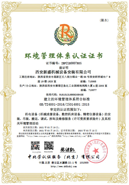 环境管理体系证书